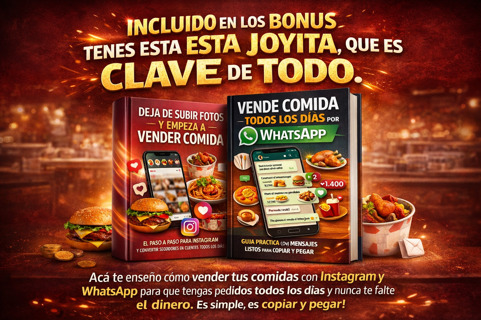 Incluye el ebook principal con recetas y método de trabajo, más 11 BONUS para sumar productos, aumentar el ticket y vender más. También vas a encontrar guías de organización, ideas de menú y tips para vender por WhatsApp/Instagram de forma simple.